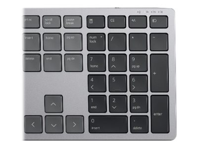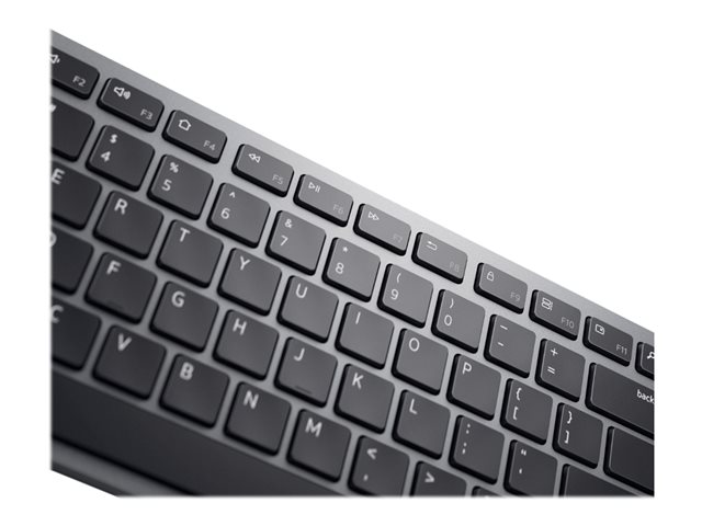 Specifications Product Description Dell Pro Plus Keyboard and Mouse KM7321W - keyboard and mouse set - QWERTY - US International - titan grey Input Device Device Type Keyboard and mouse set Interface 2.4 GHz, Bluetooth 5.0 Wireless Receiver USB wireless receiver Connectivity Technology Wireless Localization and Layout QWERTY US International Hot Keys Function Volume, mute Pointing Device Mouse - wireless - optical Buttons Qty 7 Colour Titan grey Bundled Services 3 years NBD Advance Exchange - Extended specifications