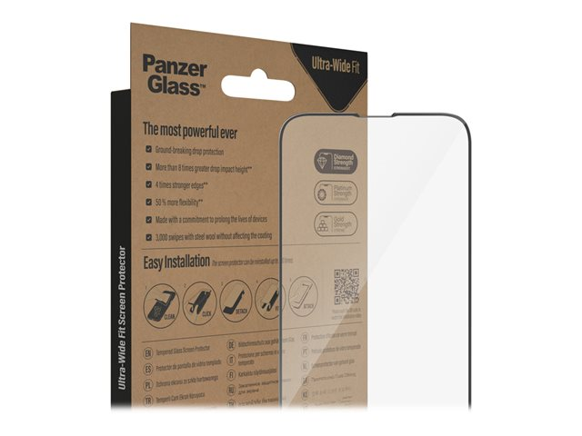Specifications Product Description PanzerGlass - screen protector for mobile phone - ultra-wide fit Product Type Screen protector - glass Intended For Mobile phone Protection Scratch-resistant, antibacterial, shock-resistant, fingerprint-resistant Package Content Screen protector, EasyAligner Product Material Glass Frame Colour Black Manufacturer Warranty 30-day return Designed For Apple iPhone 13 Pro Max, 14 Plus - Extended specifications